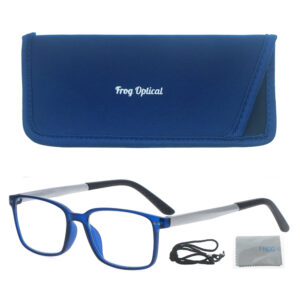 Γυαλιά πρεσβυωπίας με μπλε μετώπη και γκρι-μαύρο βραχίονα.Πιστοποίηση ΕΟΦ για τους φακούς.
