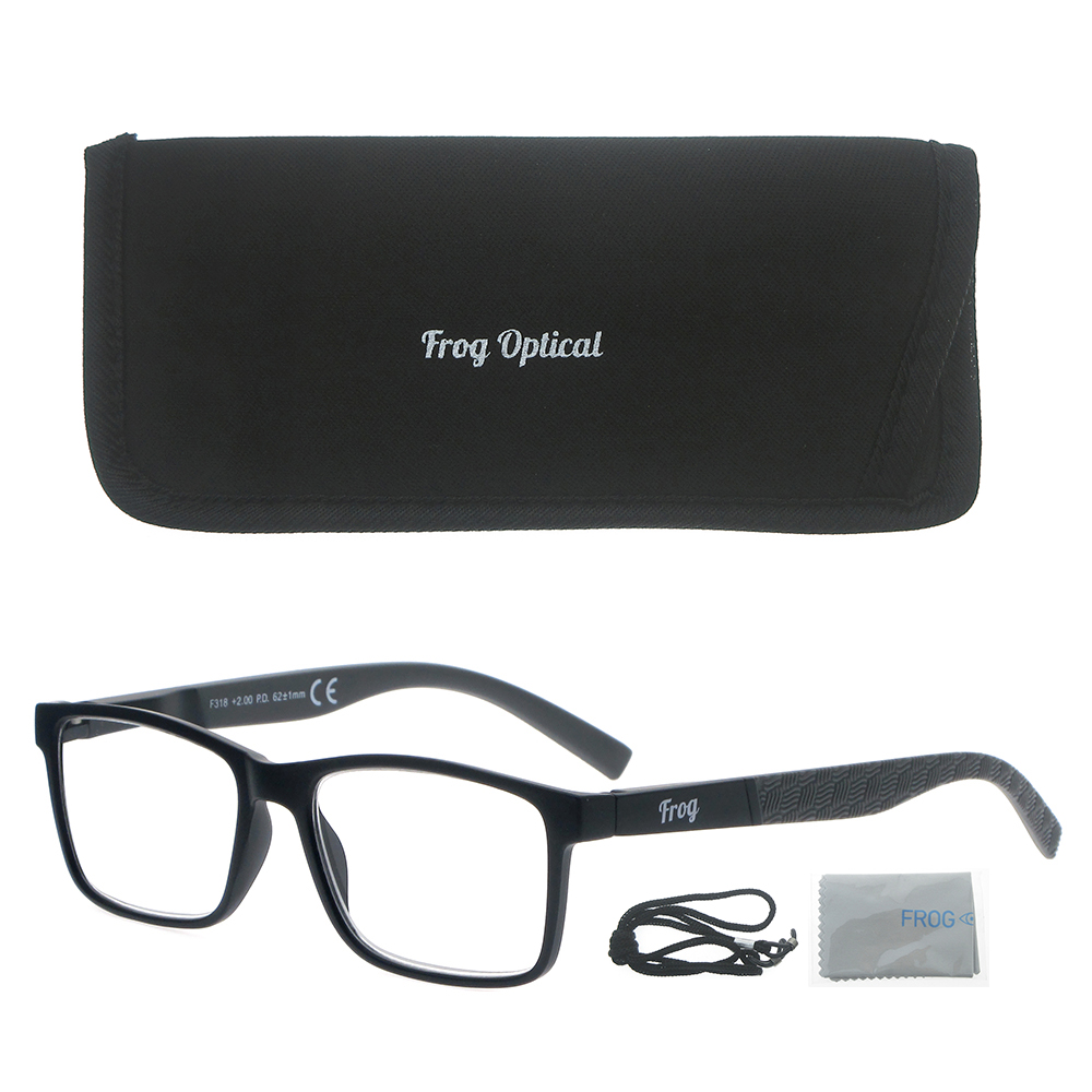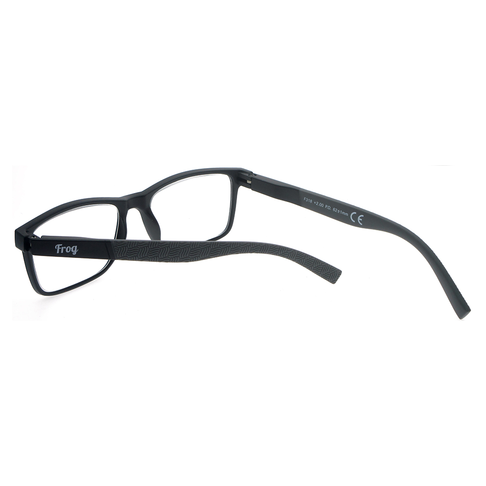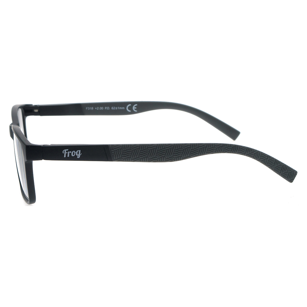 Γυαλιά πρεσβυωπίας σε χρώμα μαύρο.Μοντέλο unisex.Πιστοποίηση ΕΟΦ για τους φακούς. Τα γυαλιά FROG OPTICAL αποτελούν την ιδανική επιλογή για άνετο και ξεκούραστο διάβασμα. Το προηγμένο σύστημα Flex, ενισχύει σημαντικά την ευκαμψία του βραχίονα και την ανθεκτικότητα του σκελετού. Παράλληλα, οι ασφαιρικοί φακοί υψηλής τεχνολογίας διασφαλίζουν τη μέγιστη οπτική ποιότητα, προσφέροντας αντιχαρακτική αντοχή, υψηλή ευκρίνεια, φυσική απεικόνιση, ευκολία στον καθαρισμό και βέλτιστη υδροφοβική δράση. Η σειρά FROG OPTICAL διατίθεται σε μεγάλη ποικιλία χρωμάτων, ενώ περιλαμβάνει όλες τις δυνατές διαβαθμίσεις φακών.