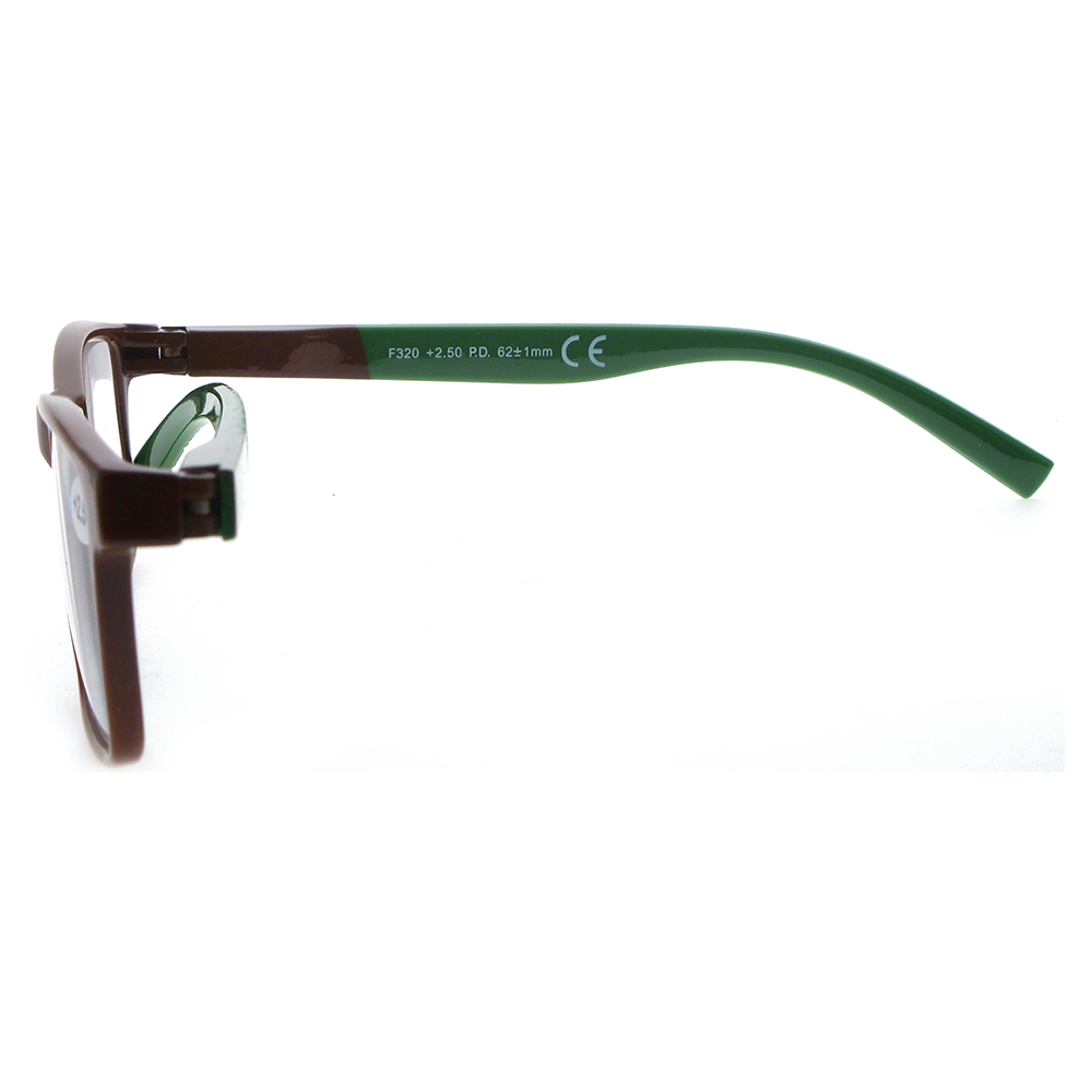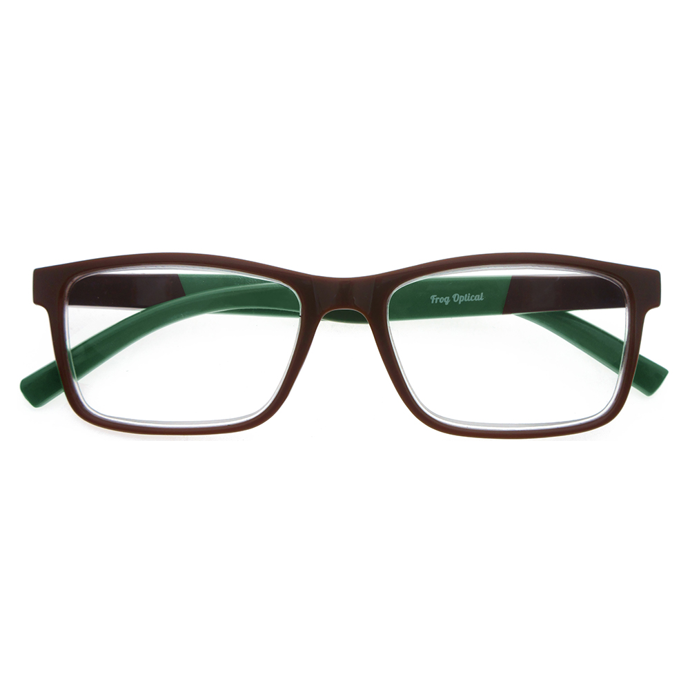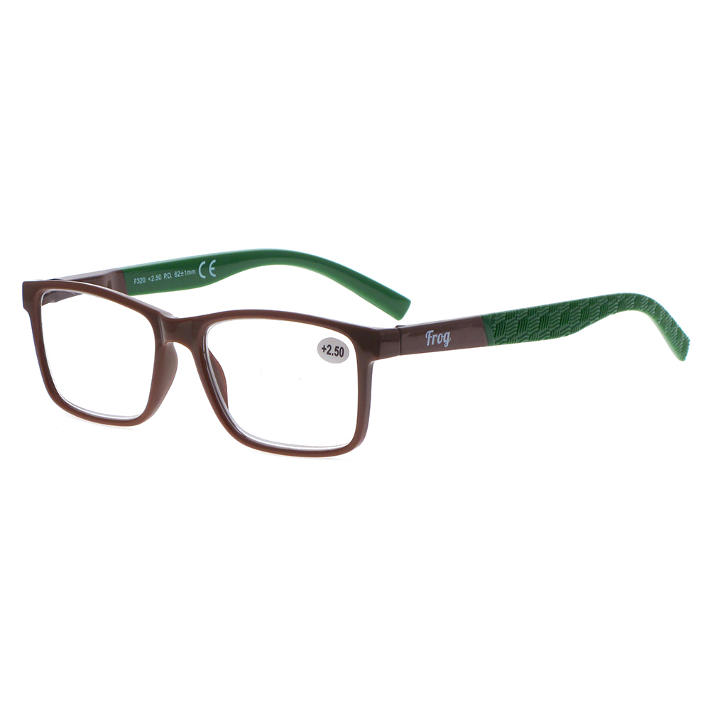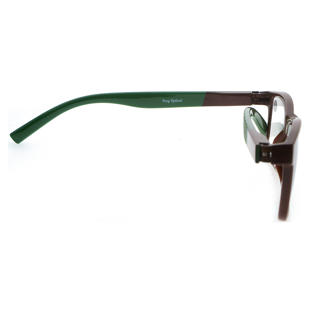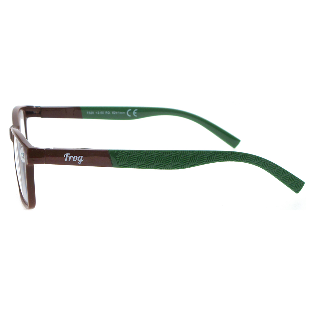 Γυαλιά πρεσβυωπίας με καφέ μετώπη και πράσινους βραχίονες.Μοντέλο unisex.Πιστοποίηση ΕΟΦ για τους φακούς. Τα γυαλιά FROG OPTICAL αποτελούν την ιδανική επιλογή για άνετο και ξεκούραστο διάβασμα. Το προηγμένο σύστημα Flex, ενισχύει σημαντικά την ευκαμψία του βραχίονα και την ανθεκτικότητα του σκελετού. Παράλληλα, οι ασφαιρικοί φακοί υψηλής τεχνολογίας διασφαλίζουν τη μέγιστη οπτική ποιότητα, προσφέροντας αντιχαρακτική αντοχή, υψηλή ευκρίνεια, φυσική απεικόνιση, ευκολία στον καθαρισμό και βέλτιστη υδροφοβική δράση.