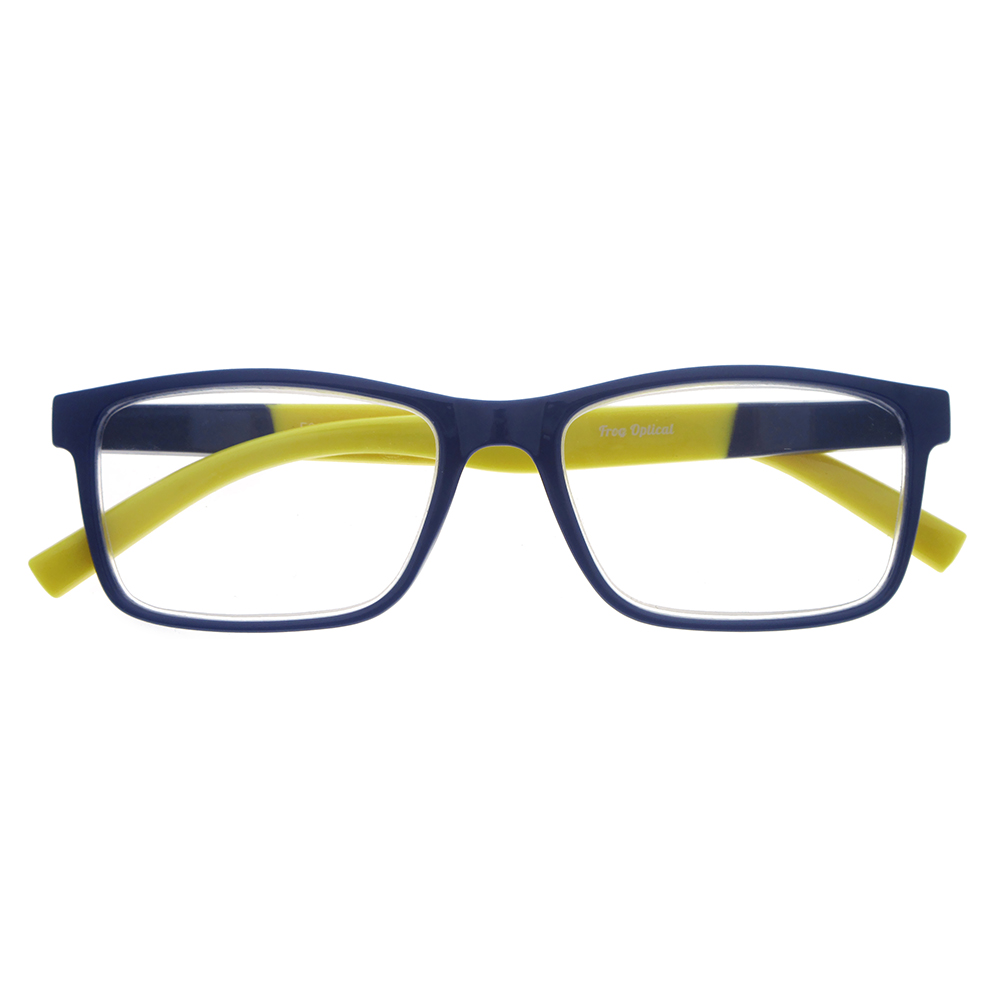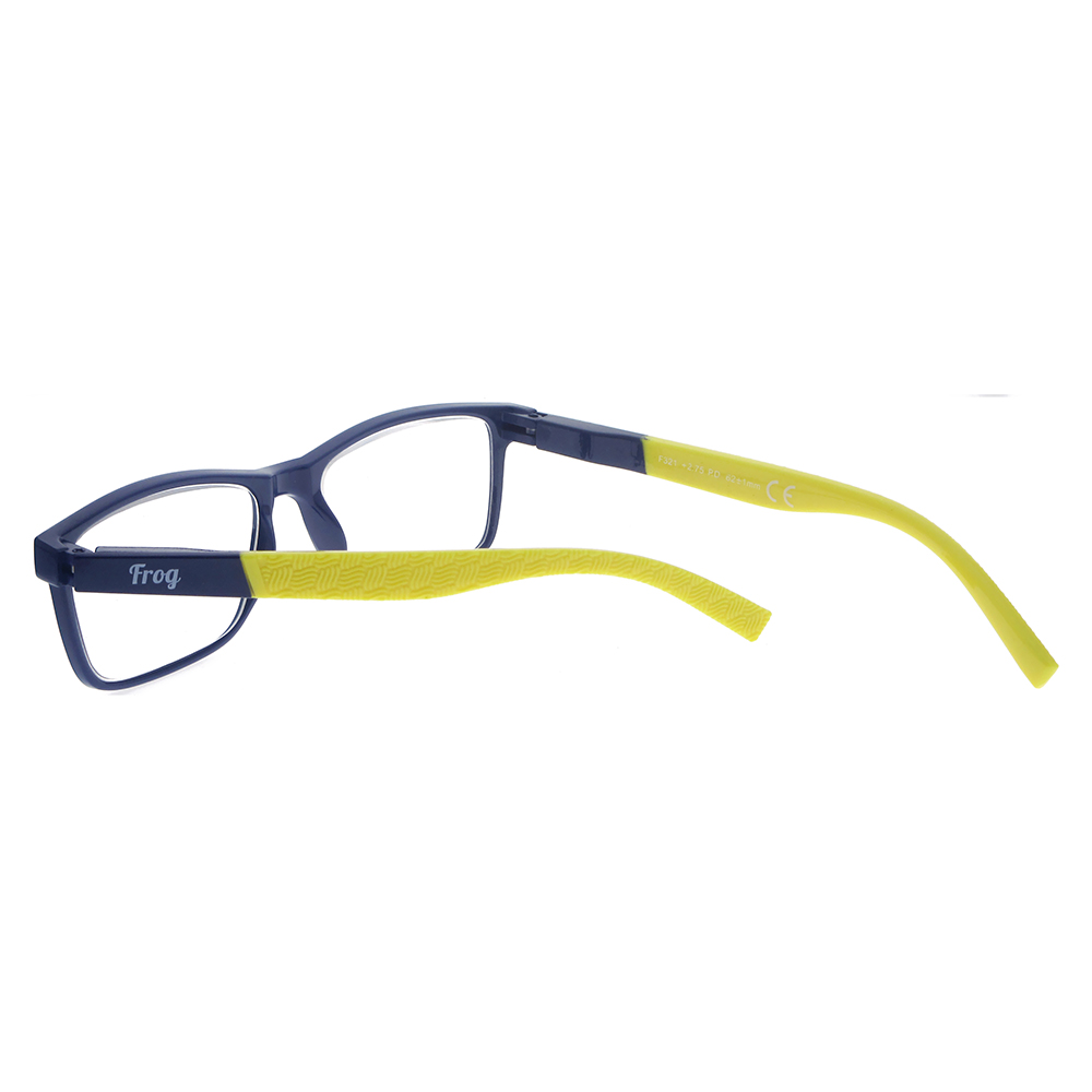 Γυαλιά πρεσβυωπίας με σκούρα μπλε μετώπη και κίτρινους βραχίονες.Μοντέλο unisex.Πιστοποίηση ΕΟΦ για τους φακούς. Τα γυαλιά FROG OPTICAL αποτελούν την ιδανική επιλογή για άνετο και ξεκούραστο διάβασμα. Το προηγμένο σύστημα Flex, ενισχύει σημαντικά την ευκαμψία του βραχίονα και την ανθεκτικότητα του σκελετού. Παράλληλα, οι ασφαιρικοί φακοί υψηλής τεχνολογίας διασφαλίζουν τη μέγιστη οπτική ποιότητα, προσφέροντας αντιχαρακτική αντοχή, υψηλή ευκρίνεια, φυσική απεικόνιση, ευκολία στον καθαρισμό και βέλτιστη υδροφοβική δράση.