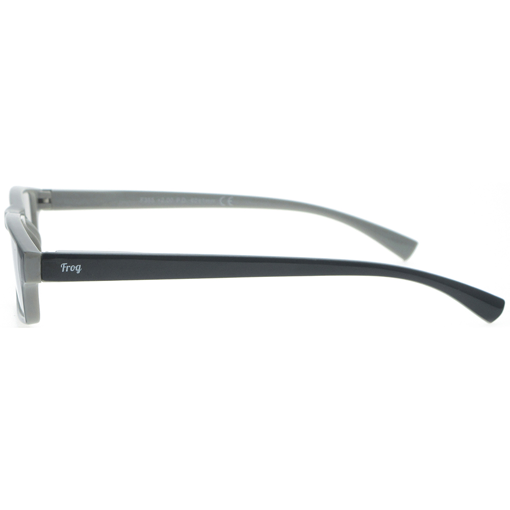 Γυαλιά πρεσβυωπίας σε χρώμα μαύρο με γκρι αποχρώσεις.Μοντέλο unisex.Πιστοποίηση ΕΟΦ για τους φακούς. Τα γυαλιά FROG OPTICAL αποτελούν την ιδανική επιλογή για άνετο και ξεκούραστο διάβασμα. Το προηγμένο σύστημα Flex, ενισχύει σημαντικά την ευκαμψία του βραχίονα και την ανθεκτικότητα του σκελετού. Παράλληλα, οι ασφαιρικοί φακοί υψηλής τεχνολογίας διασφαλίζουν τη μέγιστη οπτική ποιότητα, προσφέροντας αντιχαρακτική αντοχή, υψηλή ευκρίνεια, φυσική απεικόνιση, ευκολία στον καθαρισμό και βέλτιστη υδροφοβική δράση.