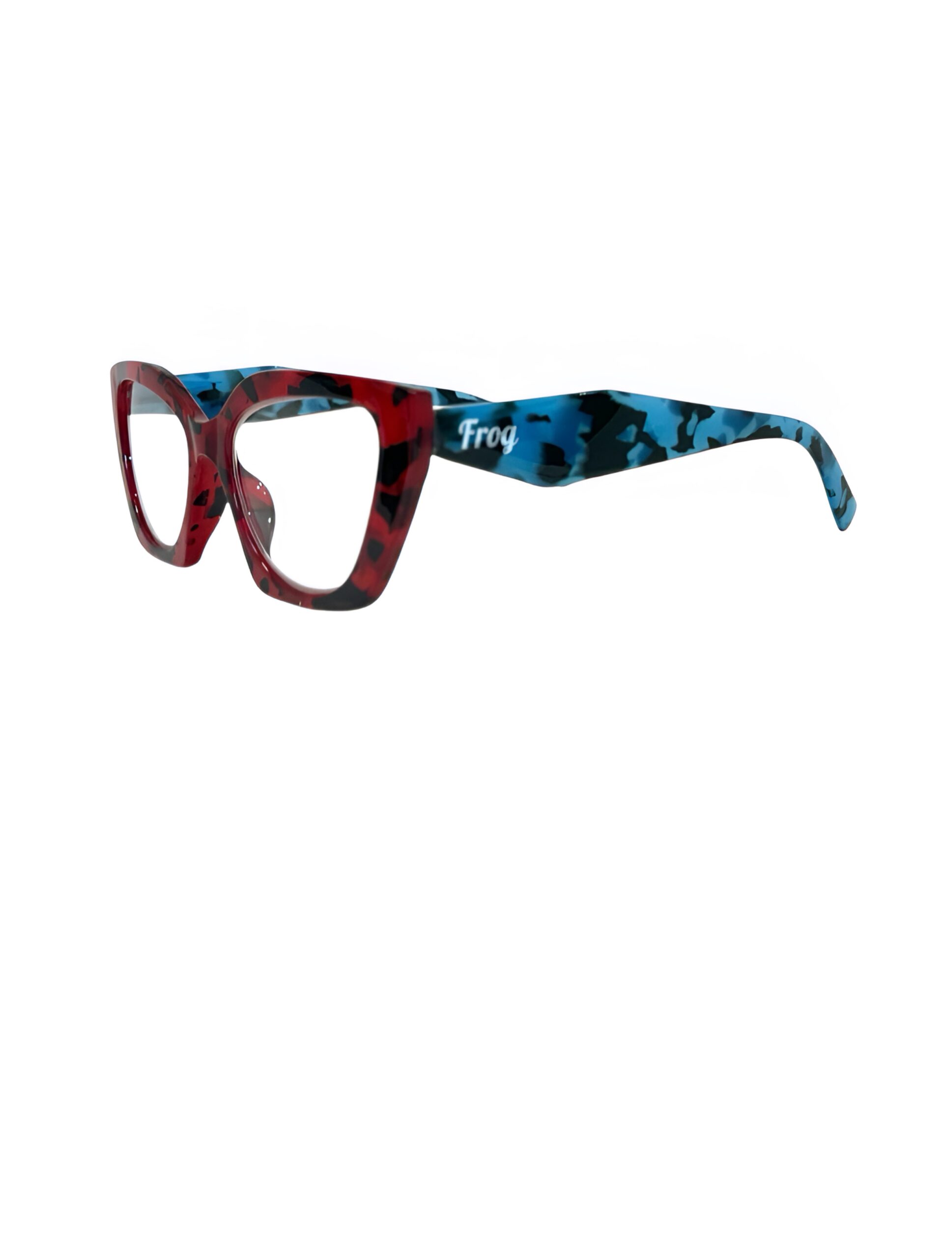 Γυαλιά πρεσβυωπίας με κόκκινη ταρταρούγα μετώπη και μπλε ταρταρούγα βραχίονες.Πιστοποίηση ΕΟΦ για τους φακούς. Τα γυαλιά FROG OPTICAL αποτελούν την ιδανική επιλογή για άνετο και ξεκούραστο διάβασμα. Το προηγμένο σύστημα Flex, ενισχύει σημαντικά την ευκαμψία του βραχίονα και την ανθεκτικότητα του σκελετού. Παράλληλα, οι ασφαιρικοί φακοί υψηλής τεχνολογίας διασφαλίζουν τη μέγιστη οπτική ποιότητα, προσφέροντας αντιχαρακτική αντοχή, υψηλή ευκρίνεια, φυσική απεικόνιση, ευκολία στον καθαρισμό και βέλτιστη υδροφοβική δράση.
