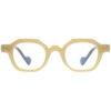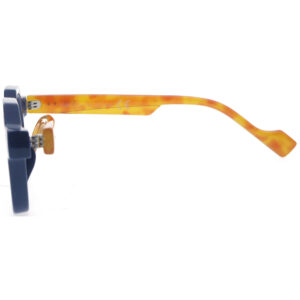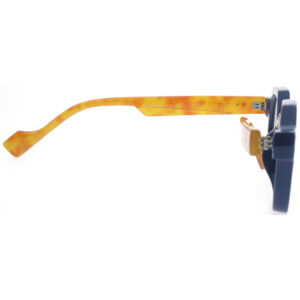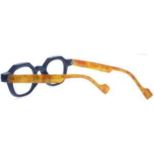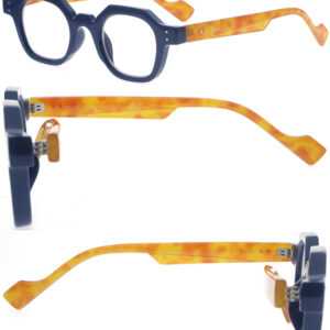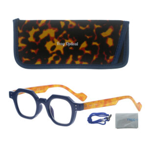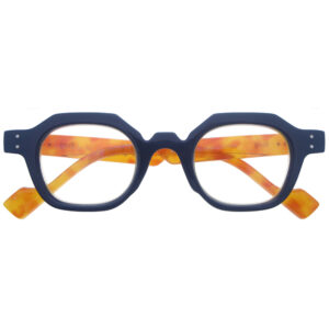 Γυαλιά πρεσβυωπίας με ειδικά φίλτρα για την τηλεόραση, τον υπολογιστή και το κινητό σε χρώμα σκούρο μπλε με πορτοκαλί βραχίονες.