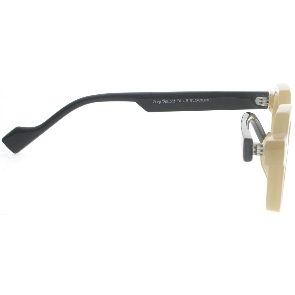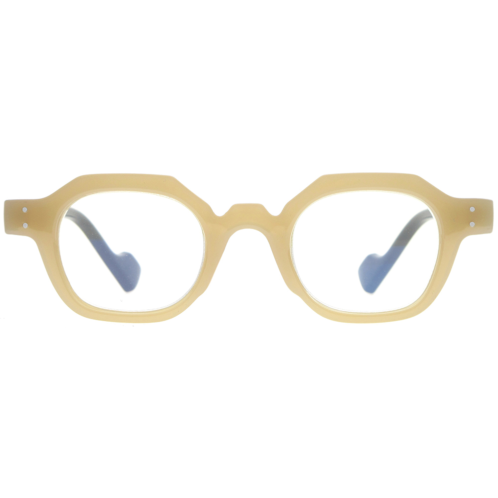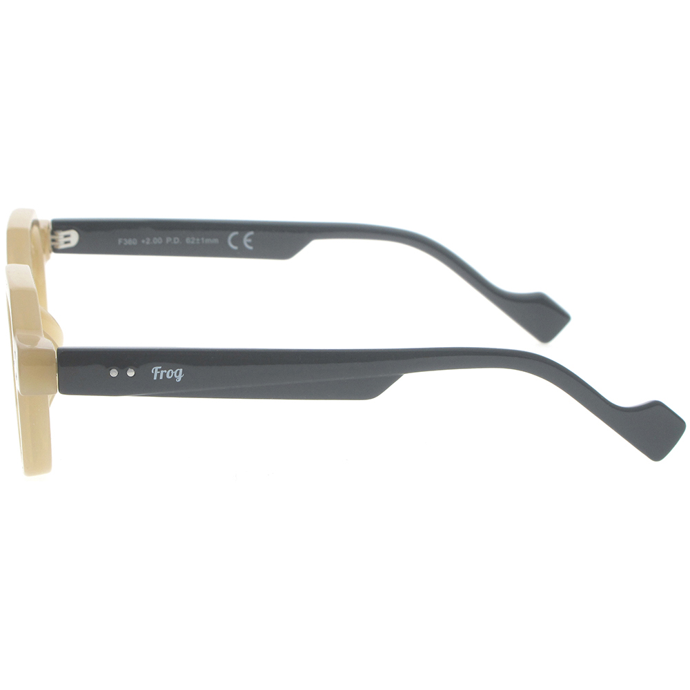 Γυαλιά πρεσβυωπίας με ειδικά φίλτρα για την τηλεόραση, τον υπολογιστή και το κινητό σε χρώμα μπεζ με μαύρους βραχίονες.