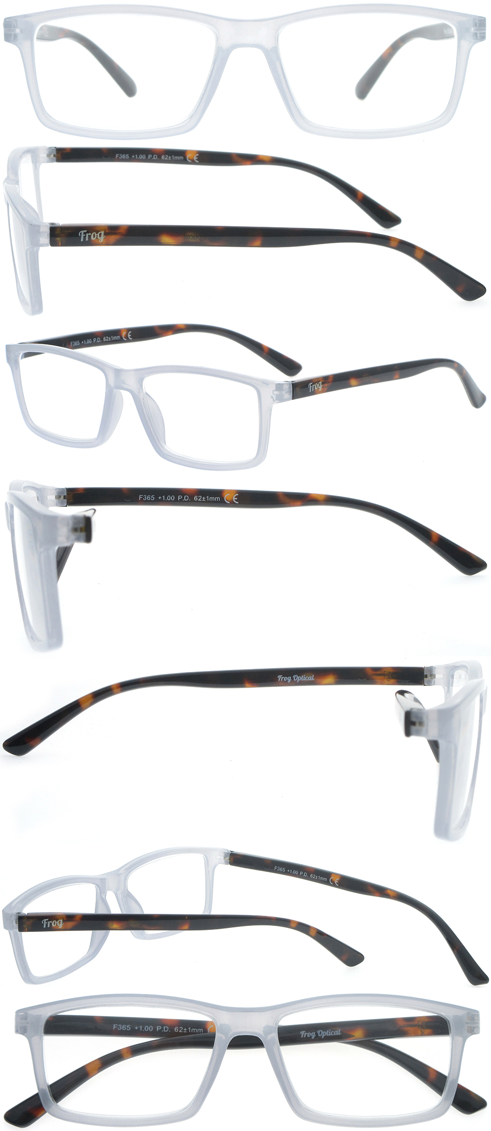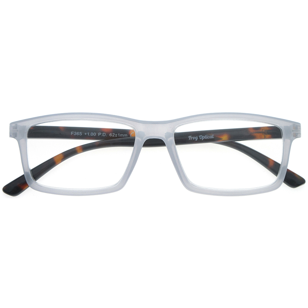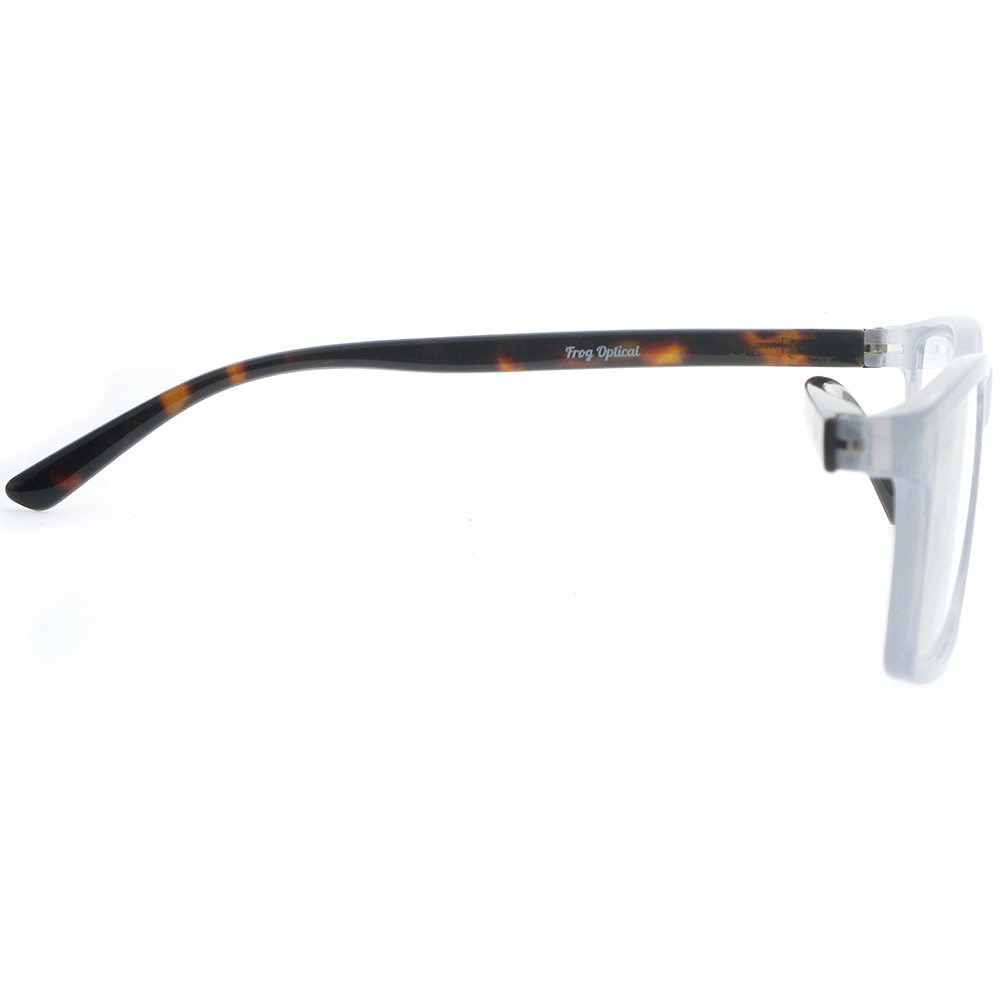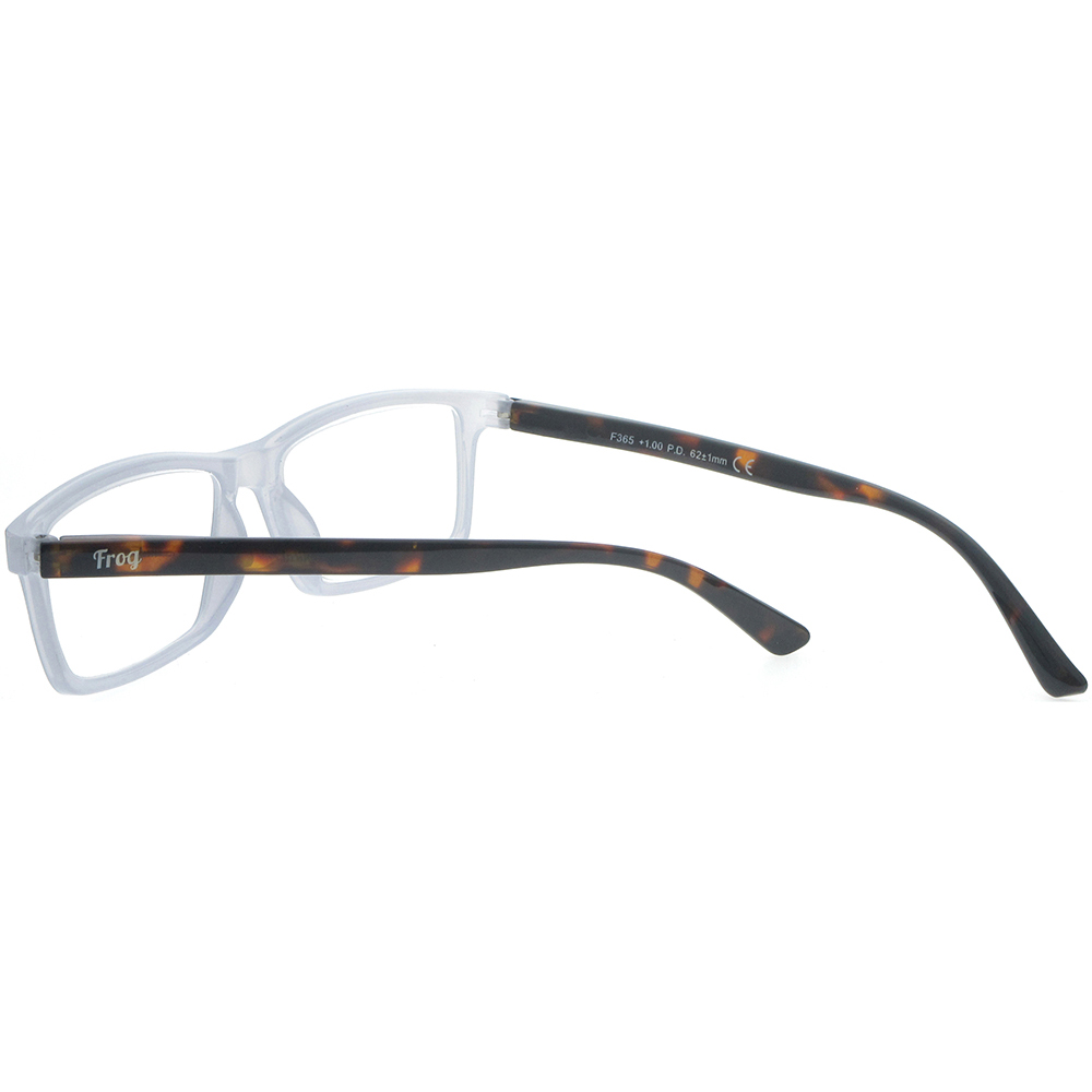 Γυαλιά πρεσβυωπίας σε χρώμα λευκό με ταρταρούγα βραχίονες. Πιστοποίηση ΕΟΦ για τους φακούς. Τα γυαλιά FROG OPTICAL αποτελούν την ιδανική επιλογή για άνετο και ξεκούραστο διάβασμα. Το προηγμένο σύστημα Flex, ενισχύει σημαντικά την ευκαμψία του βραχίονα και την ανθεκτικότητα του σκελετού. Παράλληλα, οι ασφαιρικοί φακοί υψηλής τεχνολογίας διασφαλίζουν τη μέγιστη οπτική ποιότητα, προσφέροντας αντιχαρακτική αντοχή, υψηλή ευκρίνεια, φυσική απεικόνιση, ευκολία στον καθαρισμό και βέλτιστη υδροφοβική δράση. Η σειρά FROG OPTICAL διατίθεται σε μεγάλη ποικιλία χρωμάτων, ενώ περιλαμβάνει όλες τις δυνατές διαβαθμίσεις φακών.
