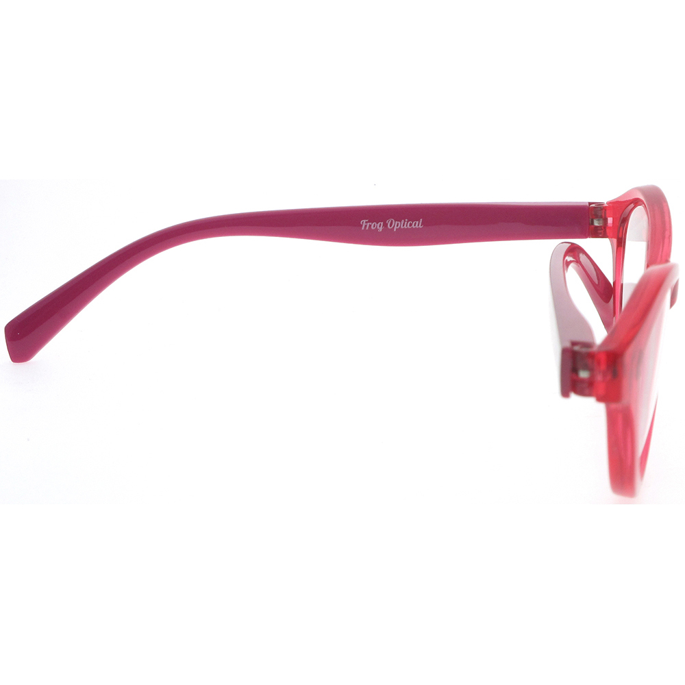 Γυαλιά πρεσβυωπίας σε χρώμα ροζ.Πιστοποίηση ΕΟΦ για τους φακούς. Τα γυαλιά FROG OPTICAL αποτελούν την ιδανική επιλογή για άνετο και ξεκούραστο διάβασμα. Το προηγμένο σύστημα Flex, ενισχύει σημαντικά την ευκαμψία του βραχίονα και την ανθεκτικότητα του σκελετού. Παράλληλα, οι ασφαιρικοί φακοί υψηλής τεχνολογίας διασφαλίζουν τη μέγιστη οπτική ποιότητα, προσφέροντας αντιχαρακτική αντοχή, υψηλή ευκρίνεια, φυσική απεικόνιση, ευκολία στον καθαρισμό και βέλτιστη υδροφοβική δράση.