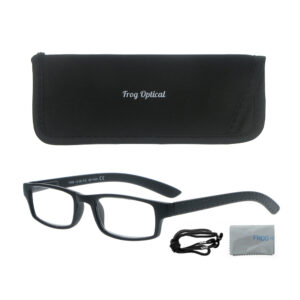 Γυαλιά πρεσβυωπίας σε χρώμα μαύρο.Μοντέλο unisex.Πιστοποίηση ΕΟΦ για τους φακούς. Τα γυαλιά FROG OPTICAL αποτελούν την ιδανική επιλογή για άνετο και ξεκούραστο διάβασμα. Το προηγμένο σύστημα Flex, ενισχύει σημαντικά την ευκαμψία του βραχίονα και την ανθεκτικότητα του σκελετού. Παράλληλα, οι ασφαιρικοί φακοί υψηλής τεχνολογίας διασφαλίζουν τη μέγιστη οπτική ποιότητα, προσφέροντας αντιχαρακτική αντοχή, υψηλή ευκρίνεια, φυσική απεικόνιση, ευκολία στον καθαρισμό και βέλτιστη υδροφοβική δράση.