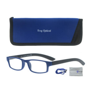 Γυαλιά πρεσβυωπίας με μπλε μετώπη και μαύρους βραχίονες.Μοντέλο unisex.Πιστοποίηση ΕΟΦ για τους φακούς. Τα γυαλιά FROG OPTICAL αποτελούν την ιδανική επιλογή για άνετο και ξεκούραστο διάβασμα. Το προηγμένο σύστημα Flex, ενισχύει σημαντικά την ευκαμψία του βραχίονα και την ανθεκτικότητα του σκελετού. Παράλληλα, οι ασφαιρικοί φακοί υψηλής τεχνολογίας διασφαλίζουν τη μέγιστη οπτική ποιότητα, προσφέροντας αντιχαρακτική αντοχή, υψηλή ευκρίνεια, φυσική απεικόνιση, ευκολία στον καθαρισμό και βέλτιστη υδροφοβική δράση.