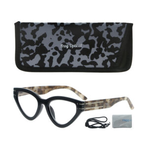 Γυαλιά πρεσβυωπίας με μαύρη μετώπη και ταρταρούγα βραχίονες.Πιστοποίηση ΕΟΦ για τους φακούς. Τα γυαλιά FROG OPTICAL αποτελούν την ιδανική επιλογή για άνετο και ξεκούραστο διάβασμα. Το προηγμένο σύστημα Flex, ενισχύει σημαντικά την ευκαμψία του βραχίονα και την ανθεκτικότητα του σκελετού. Παράλληλα, οι ασφαιρικοί φακοί υψηλής τεχνολογίας διασφαλίζουν τη μέγιστη οπτική ποιότητα, προσφέροντας αντιχαρακτική αντοχή, υψηλή ευκρίνεια, φυσική απεικόνιση, ευκολία στον καθαρισμό και βέλτιστη υδροφοβική δράση.