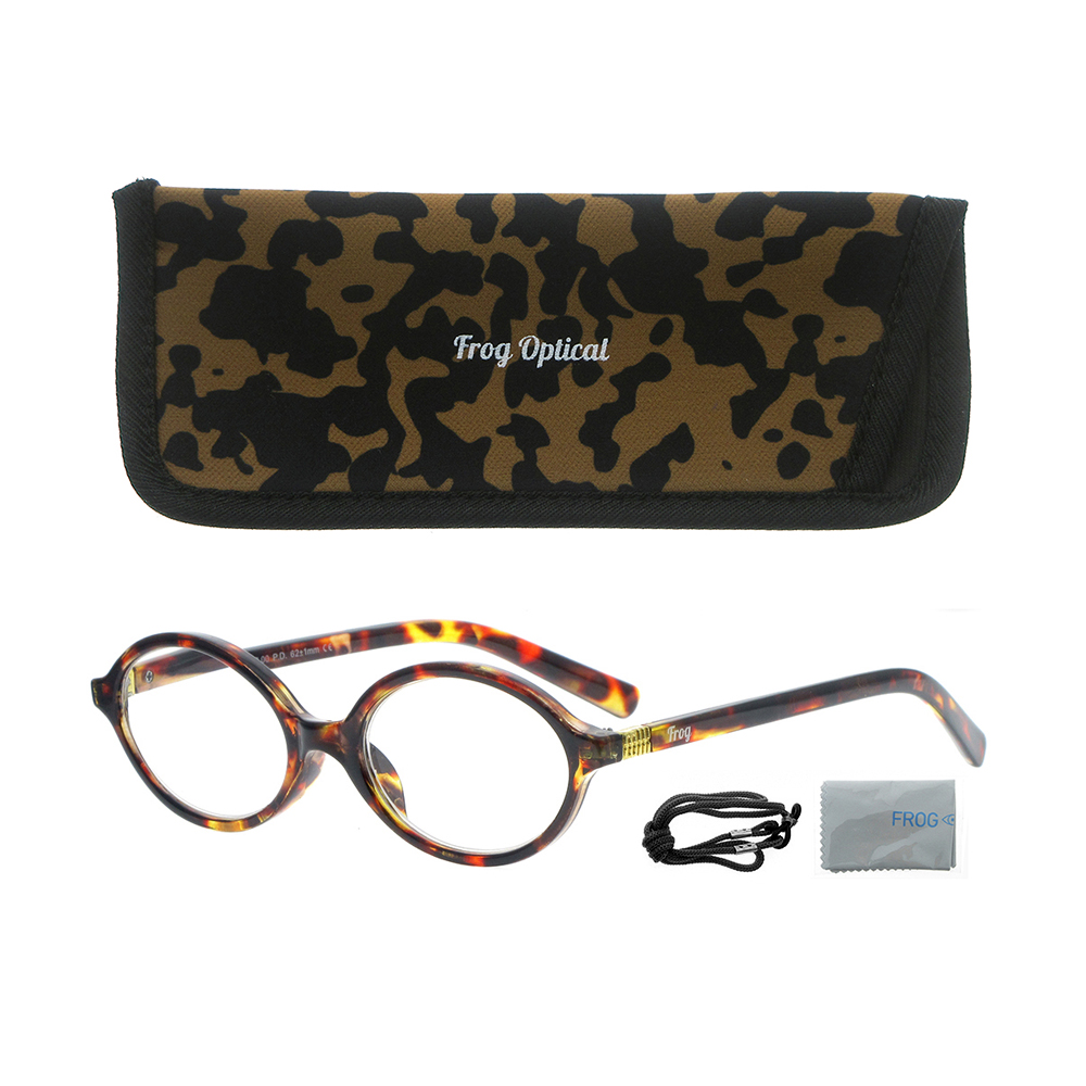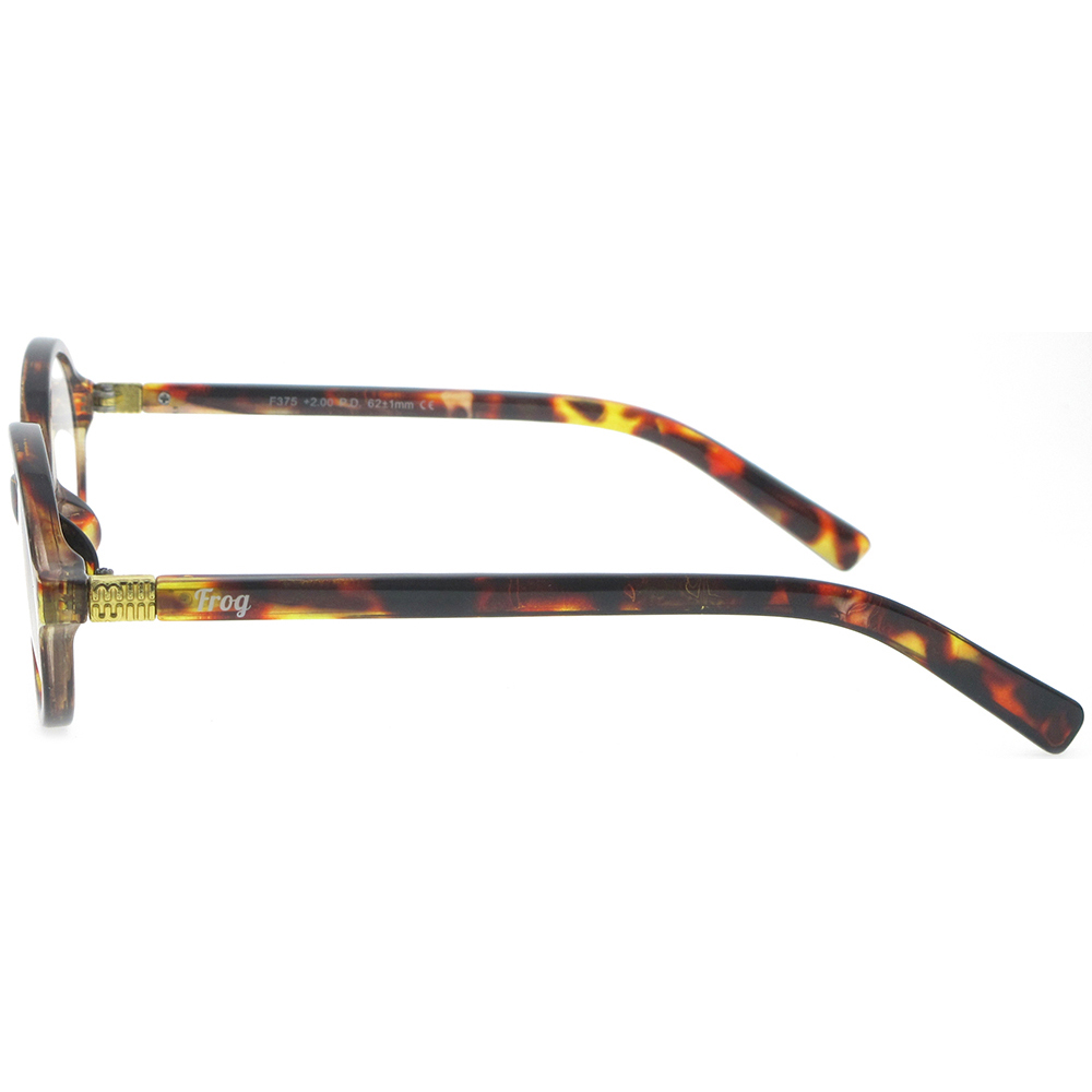 Γυαλιά πρεσβυωπίας σε χρώμα ταρταρούγα. Πιστοποίηση ΕΟΦ για τους φακούς. Τα γυαλιά FROG OPTICAL αποτελούν την ιδανική επιλογή για άνετο και ξεκούραστο διάβασμα. Το προηγμένο σύστημα Flex, ενισχύει σημαντικά την ευκαμψία του βραχίονα και την ανθεκτικότητα του σκελετού. Παράλληλα, οι ασφαιρικοί φακοί υψηλής τεχνολογίας διασφαλίζουν τη μέγιστη οπτική ποιότητα, προσφέροντας αντιχαρακτική αντοχή, υψηλή ευκρίνεια, φυσική απεικόνιση, ευκολία στον καθαρισμό και βέλτιστη υδροφοβική δράση. Η σειρά FROG OPTICAL διατίθεται σε μεγάλη ποικιλία χρωμάτων, ενώ περιλαμβάνει όλες τις δυνατές διαβαθμίσεις φακών.