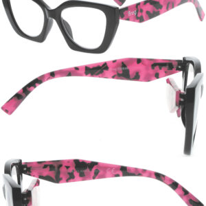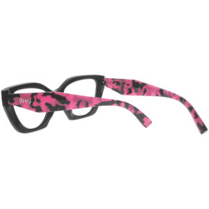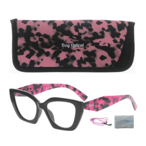 Γυαλιά πρεσβυωπίας με μαύρη μετώπη και μάυρο-ροζ χρώμα στους βραχίονες.Πιστοποίηση ΕΟΦ για τους φακούς. Τα γυαλιά FROG OPTICAL αποτελούν την ιδανική επιλογή για άνετο και ξεκούραστο διάβασμα. Το προηγμένο σύστημα Flex, ενισχύει σημαντικά την ευκαμψία του βραχίονα και την ανθεκτικότητα του σκελετού. Παράλληλα, οι ασφαιρικοί φακοί υψηλής τεχνολογίας διασφαλίζουν τη μέγιστη οπτική ποιότητα, προσφέροντας αντιχαρακτική αντοχή, υψηλή ευκρίνεια, φυσική απεικόνιση, ευκολία στον καθαρισμό και βέλτιστη υδροφοβική δράση.