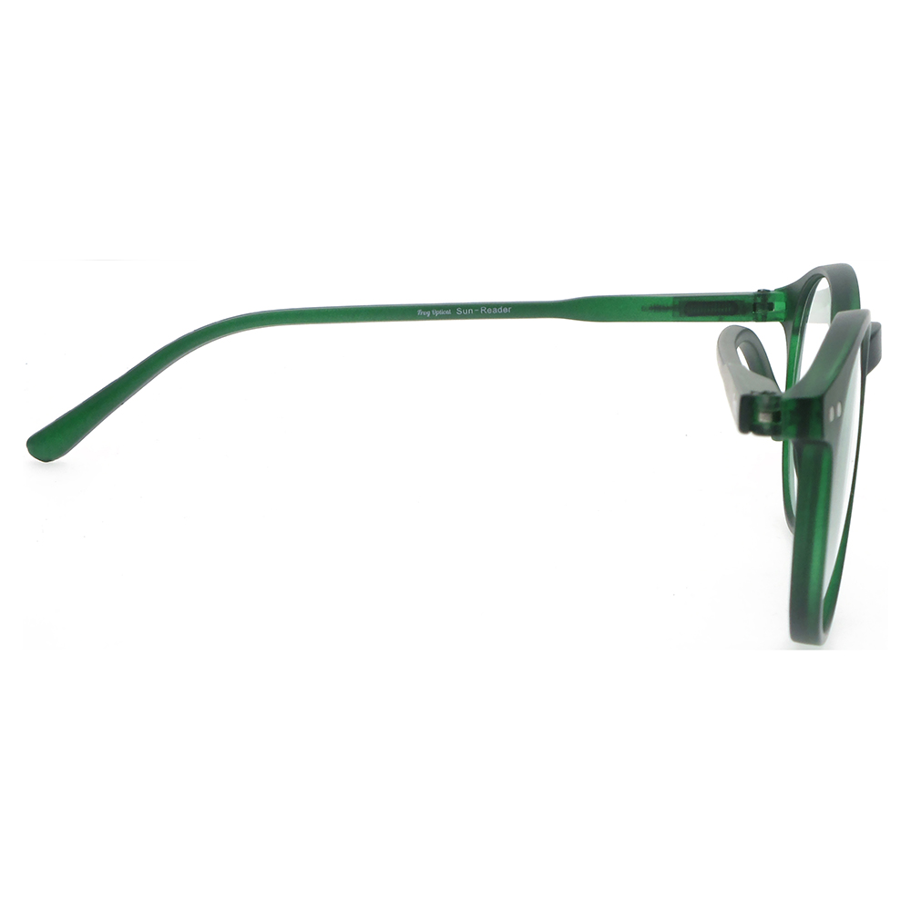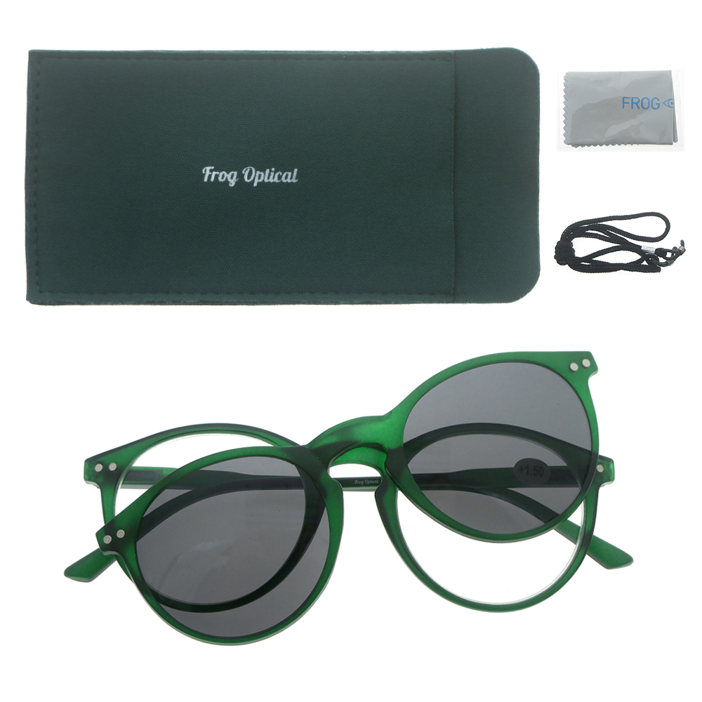 Γυαλιά ηλίου και πρεσβυωπίας unisex σε χρώμα πράσινο.Διαθέτει προστασία UV400 και φακό υψηλής αντοχής στα χτυπήματα που παρέχει απόλυτη άνεση χάρη στην ευελιξία και το χαμηλό του βάρος.Πιστοποίηση ΕΟΦ για τους φακούς. Τα γυαλιά FROG OPTICAL αποτελούν την ιδανική επιλογή για άνετο και ξεκούραστο διάβασμα. Το προηγμένο σύστημα Flex, ενισχύει σημαντικά την ευκαμψία του βραχίονα και την ανθεκτικότητα του σκελετού. Παράλληλα, οι ασφαιρικοί φακοί υψηλής τεχνολογίας διασφαλίζουν τη μέγιστη οπτική ποιότητα, προσφέροντας αντιχαρακτική αντοχή, υψηλή ευκρίνεια, φυσική απεικόνιση, ευκολία στον καθαρισμό και βέλτιστη υδροφοβική δράση. Η σειρά FROG OPTICAL διατίθεται σε μεγάλη ποικιλία χρωμάτων, ενώ περιλαμβάνει όλες τις δυνατές διαβαθμίσεις φακών.